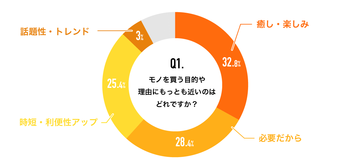 モノを買う動機として、「必要だから」という回答より「癒し・楽しみ」という回答が上回った。モノそれ自体だけでなく、買うことで体験できるコトに対価を支払うのかもしれない。だから買うときは「本当に自分に必要か」を判断する。そんなとき、どんなことを気にするんだろう?